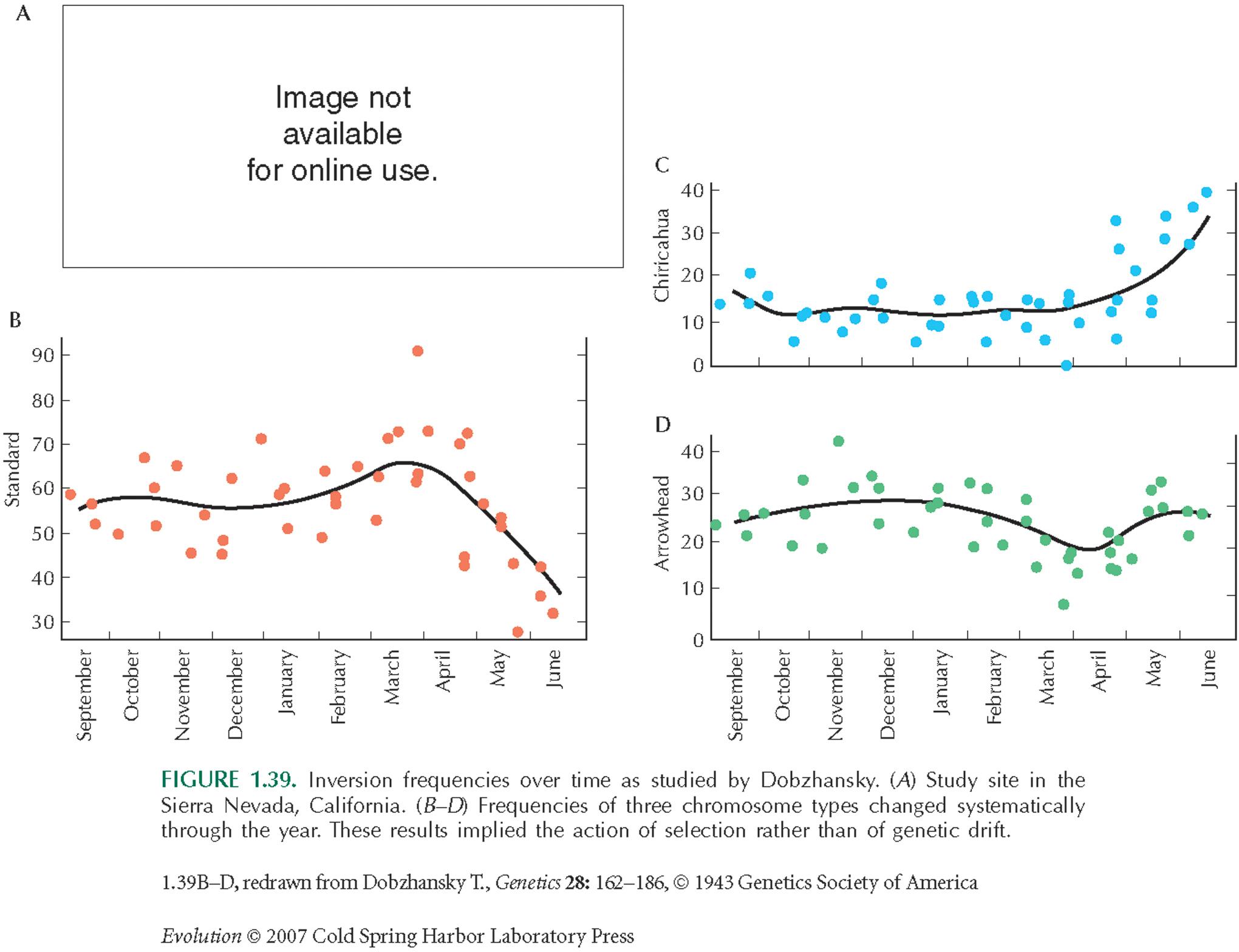 FIGURE 1.39. Inversion frequencies over time as studied by Dobzhansky (jpg) (pdf)
