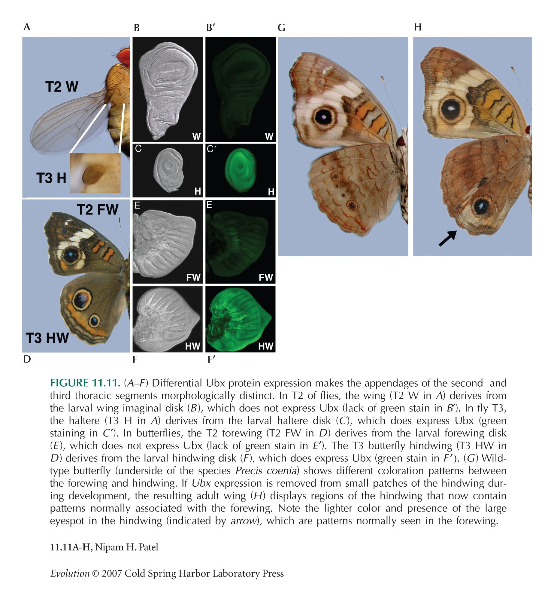 FIGURE 11.11. Differential Ubx protein expression; wild-type butterfly (jpg) (pdf)