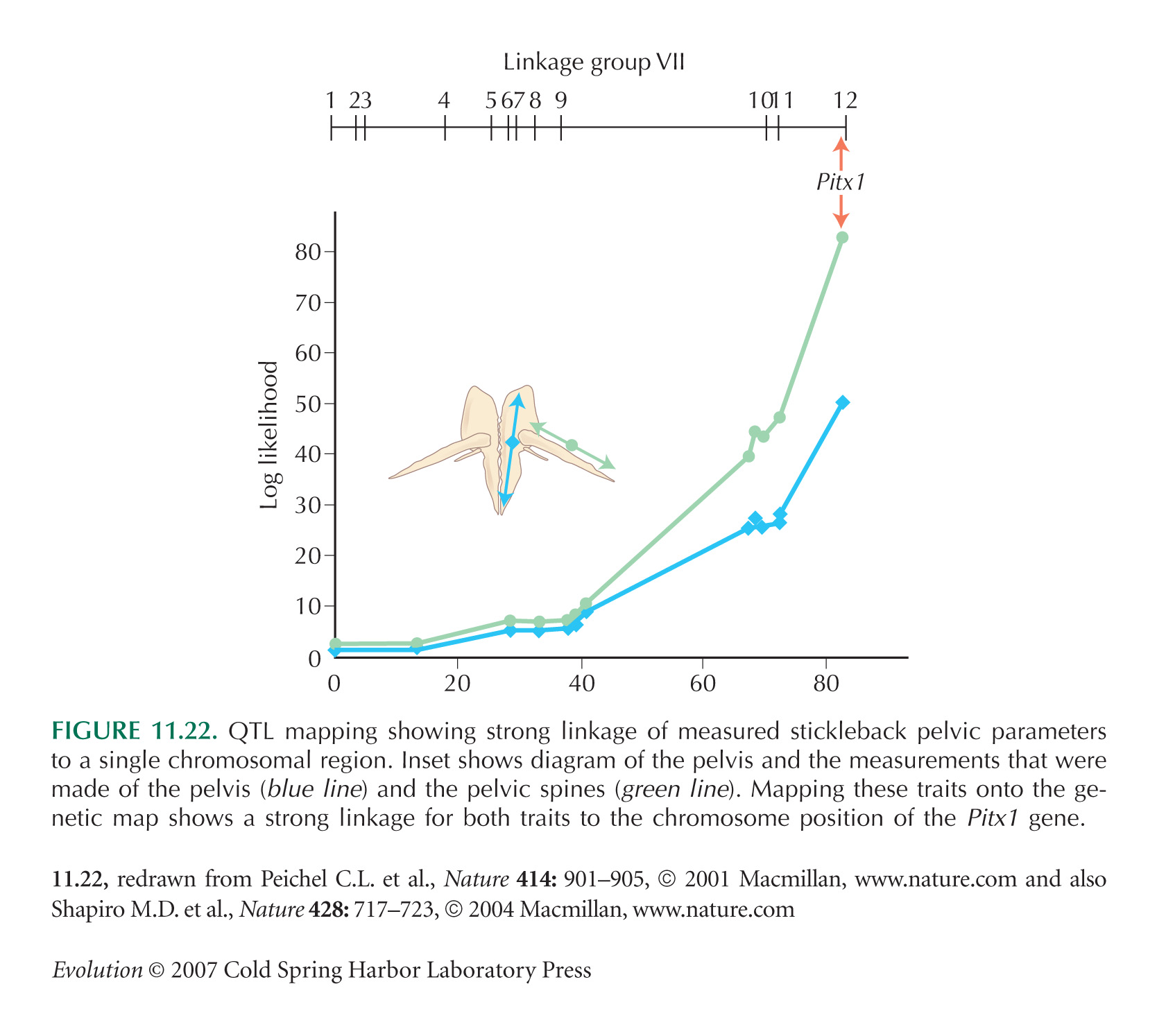 FIGURE 11.22. QTL mapping showing stickleback pelvic parameters (jpg) (pdf)