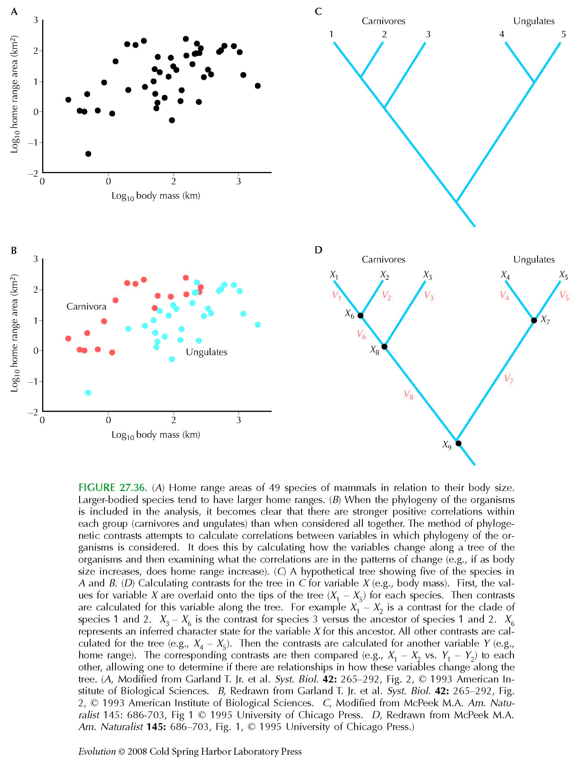 FIGURE 27.36. Home range areas of mammals in relation to their body size (jpg) (pdf)
