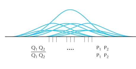 Figure WN14.1. The distribution of a quantitative trait in individuals with different marker genotypes at two loci, in parental F1 and F2 generations.